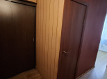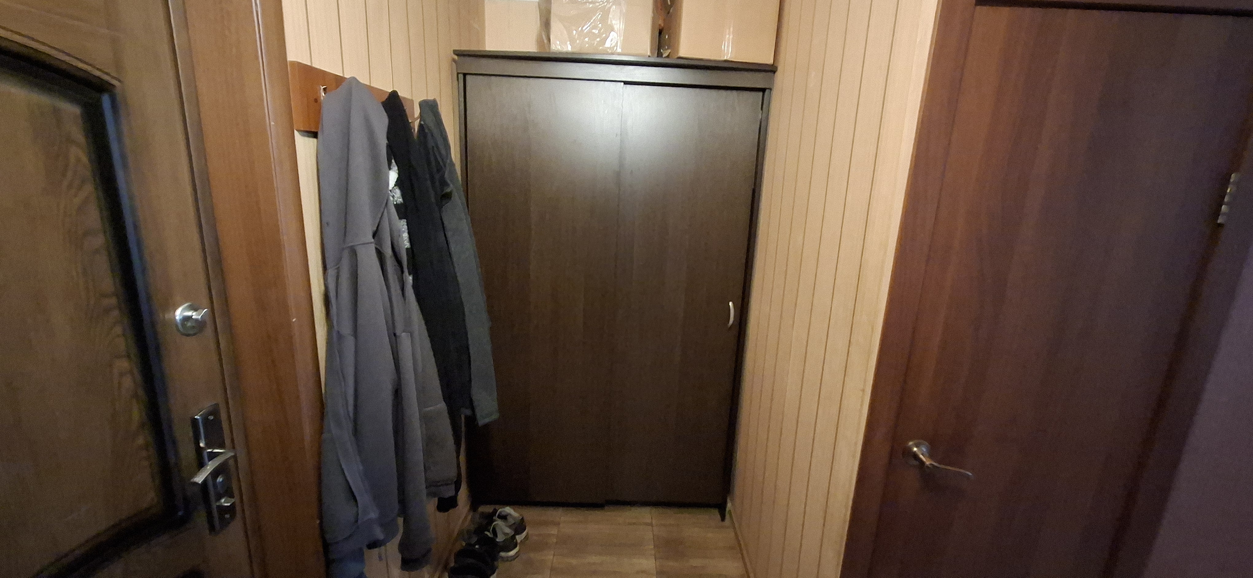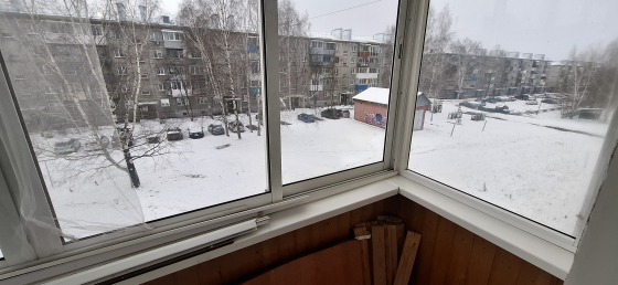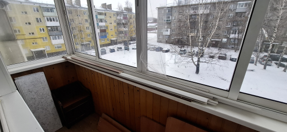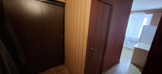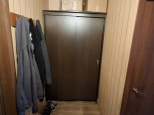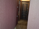 Потолок выровнен и побелен. Пол в коридоре и на кухне залит – нет никаких скрипов! В прихожей стоит большой встроенный шкаф. Застекленный  балкон.
