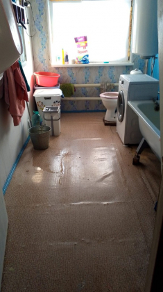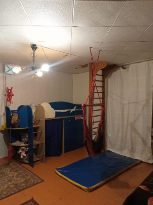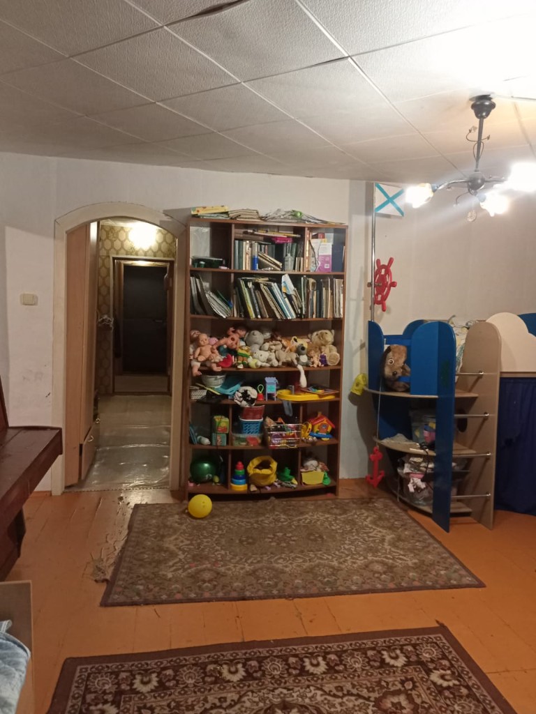 В доме сделан косметический ремонт. На полу постелен линолеум, на стенах обои, установлены пластиковые окна.