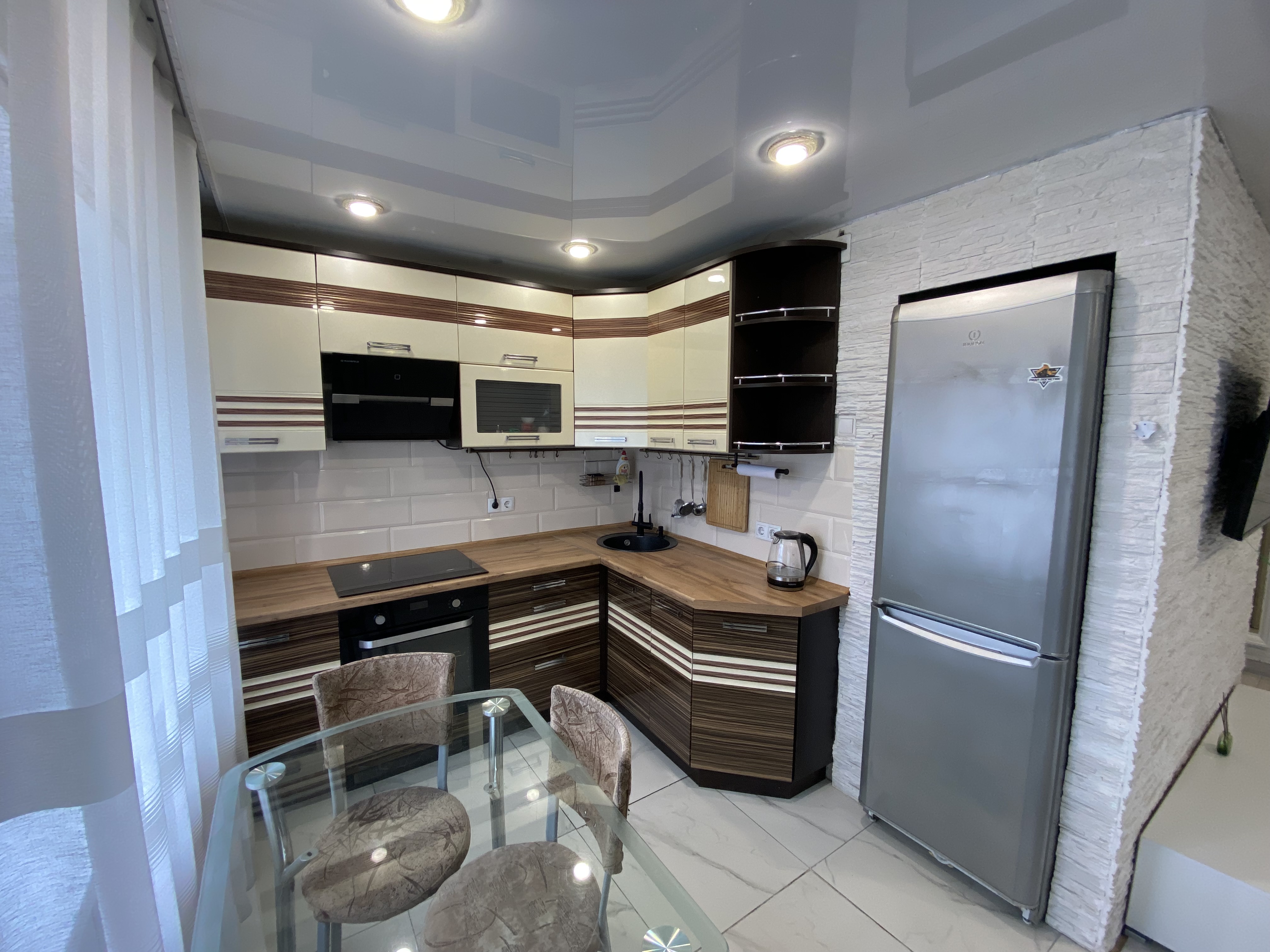 В квартире остается кухонный гарнитур со встроенной техникой, холодильник, диван, кровать и прочие предметы интерьера.