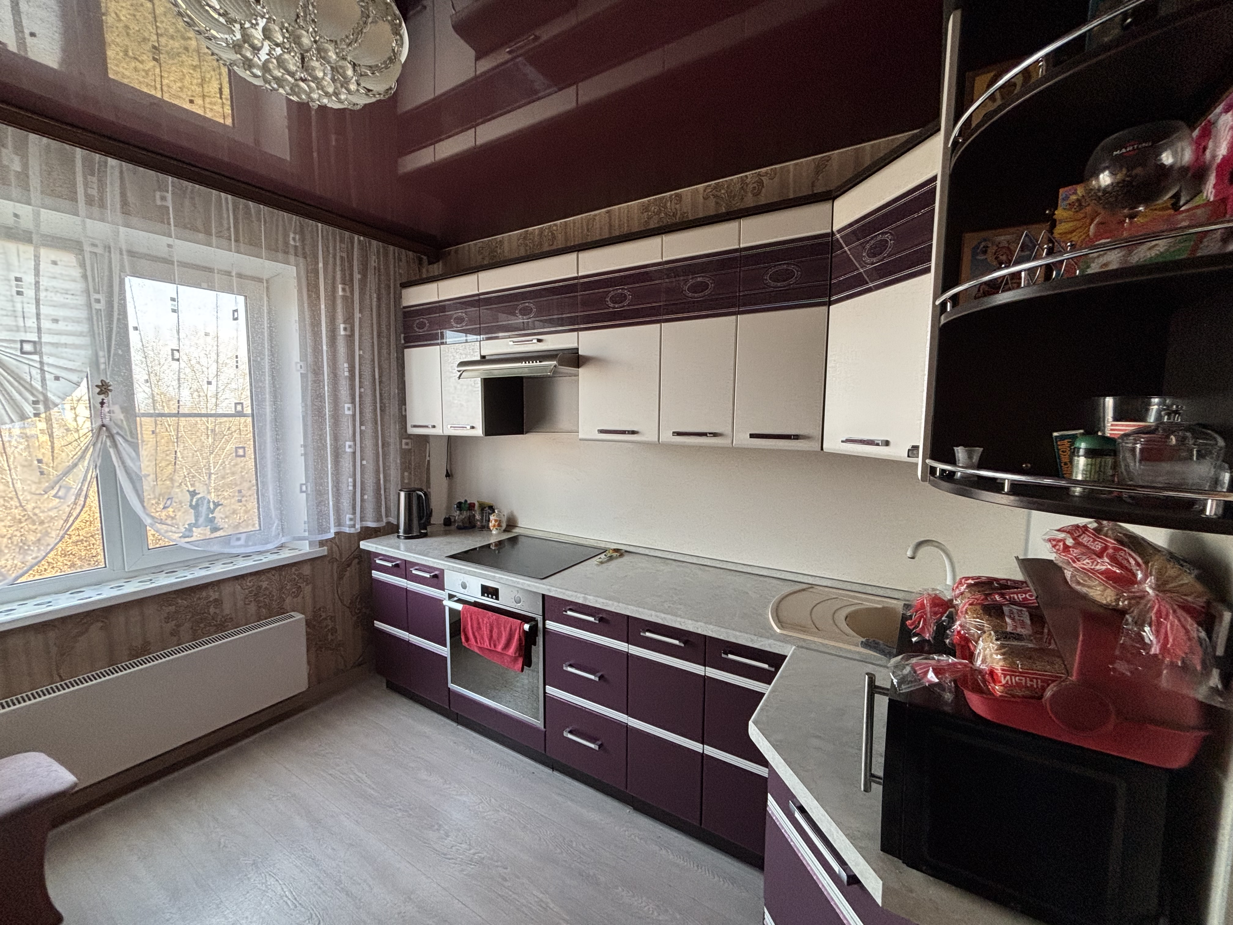 В квартире выполнен капитальный ремонт, установлены пластиковые окна, балкон застеклен,на полу постелен линолеум, по всей квартире установлены натяжные потолки, санузел выложен кафелем.